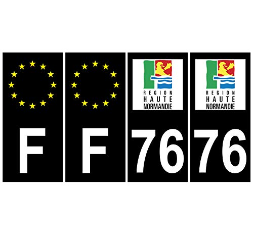 Supstick 4 Stickers Autocollants Plaques Immatriculation Auto Dept 76 Haute Normandie Noir Angles Carrés