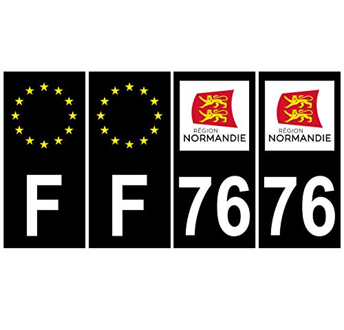 Supstick 4 Stickers Autocollants Plaques Immatriculation Auto Dept 76 Normandie Noir Angles Carrés