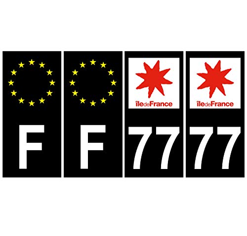 Supstick 4 Stickers Autocollants Plaques Immatriculation Auto Dept 77 Ile de France Noir Angles Carrés