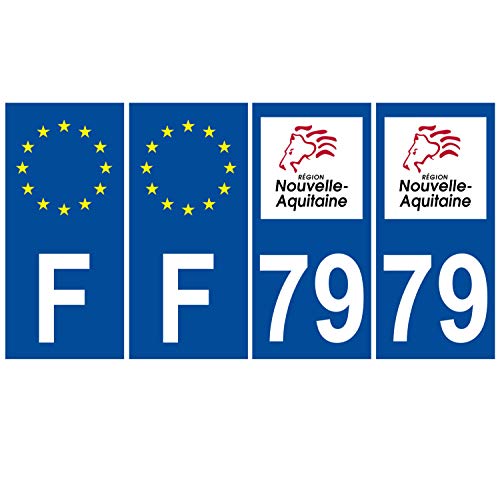 Supstick 4 Stickers Autocollants Plaques Immatriculation Auto Dept 79 Nouvelle Aquitaine Bleu Foncé Angles Carrés