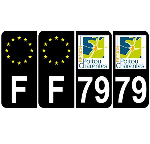 Supstick 4 Stickers Autocollants Plaques Immatriculation Auto Dept 79 Poitou Charentes Noir Angles Arrondis