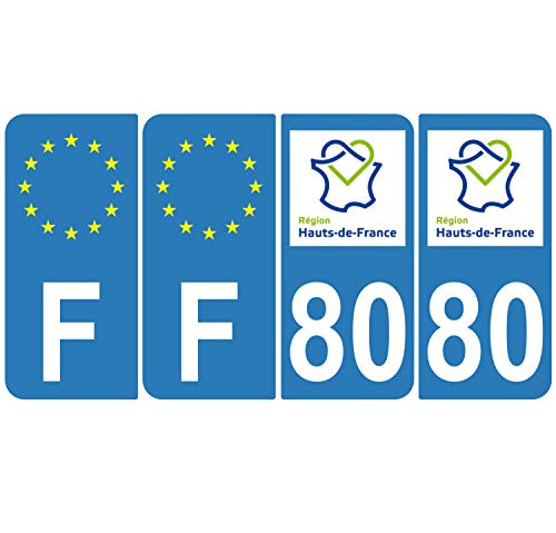 Supstick 4 Stickers Autocollants Plaques Immatriculation Auto Dept 80 Hauts de France Bleu Clair Angles Arrondis