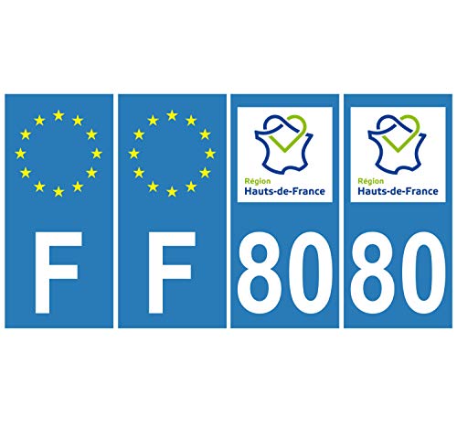 Supstick 4 Stickers Autocollants Plaques Immatriculation Auto Dept 80 Hauts de France Bleu Clair Angles Carrés