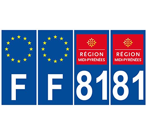 Supstick 4 Stickers Autocollants Plaques Immatriculation Auto Dept 81 Midi Pyrénées Bleu Foncé Angles Carrés
