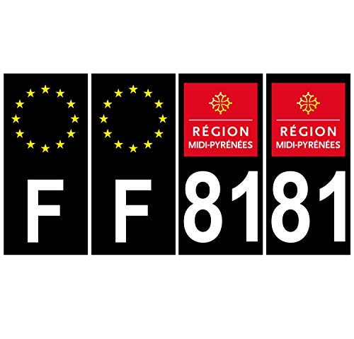 Supstick 4 Stickers Autocollants Plaques Immatriculation Auto Dept 81 Midi Pyrénées Noir Angles Carrés