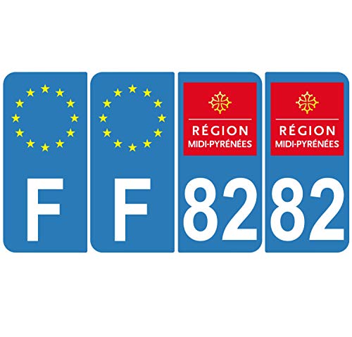 Supstick 4 Stickers Autocollants Plaques Immatriculation Auto Dept 82 Midi Pyrénées Bleu Clair Angles Arrondis