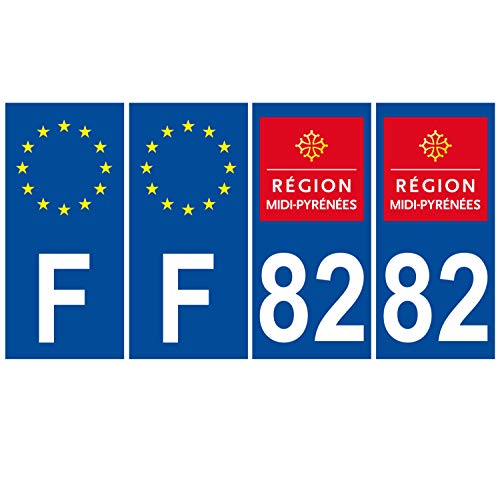 Supstick 4 Stickers Autocollants Plaques Immatriculation Auto Dept 82 Midi Pyrénées Bleu Foncé Angles Carrés