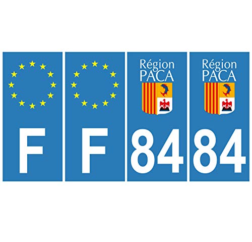 Supstick 4 Stickers Autocollants Plaques Immatriculation Auto Dept 84 Paca Bleu Clair Angles Carrés