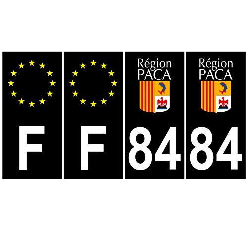 Supstick 4 Stickers Autocollants Plaques Immatriculation Auto Dept 84 Paca Noir Angles Carrés