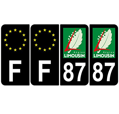 Supstick 4 Stickers Autocollants Plaques Immatriculation Auto Dept 87 Limousin Noir Angles Arrondis