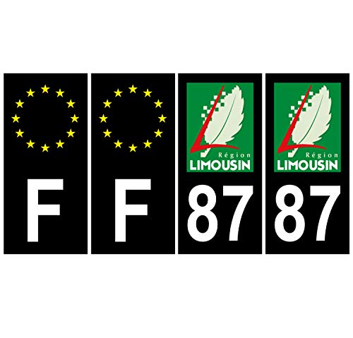 Supstick 4 Stickers Autocollants Plaques Immatriculation Auto Dept 87 Limousin Noir Angles Carrés