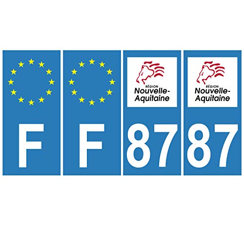 Supstick 4 Stickers Autocollants Plaques Immatriculation Auto Dept 87 Nouvelle Aquitaine Bleu Clair Angles Carrés