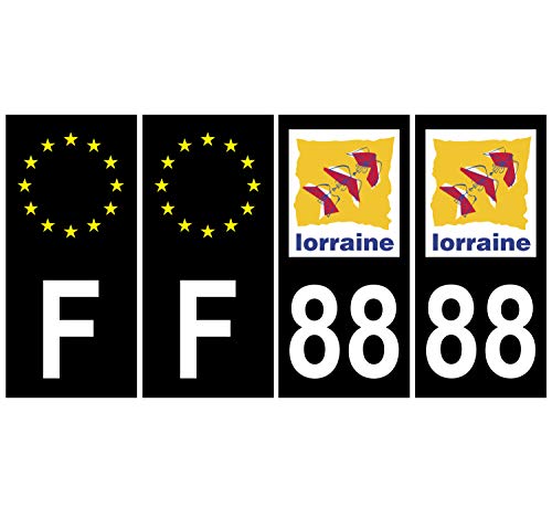 Supstick 4 Stickers Autocollants Plaques Immatriculation Auto Dept 88 Lorraine Noir Angles Carrés