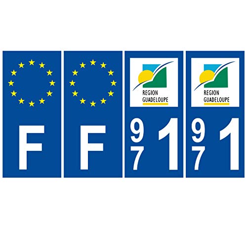 Supstick 4 Stickers Autocollants Plaques Immatriculation Auto Dept 971 Guadeloupe Bleu Foncé Angles Carrés