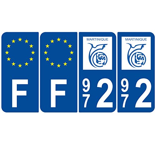 Supstick 4 Stickers Autocollants Plaques Immatriculation Auto Dept 972 Martinique Bleu Foncé Angles Arrondis