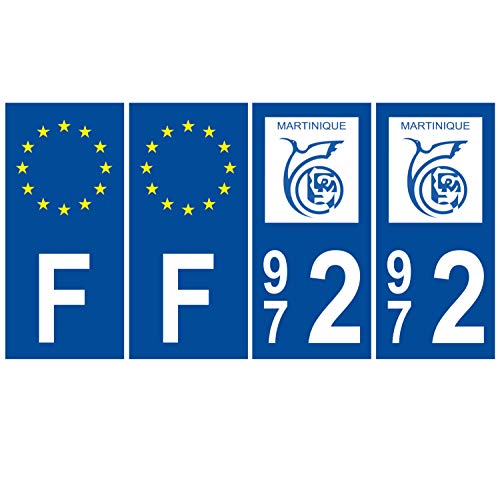 Supstick 4 Stickers Autocollants Plaques Immatriculation Auto Dept 972 Martinique Bleu Foncé Angles Carrés