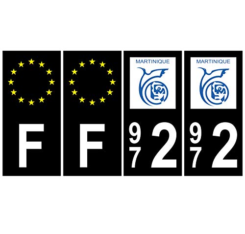 Supstick 4 Stickers Autocollants Plaques Immatriculation Auto Dept 972 Martinique Noir Angles Carrés