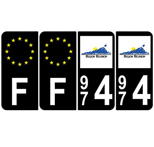 Supstick 4 Stickers Autocollants Plaques Immatriculation Auto Dept 974 Réunion Noir Angles Arrondis